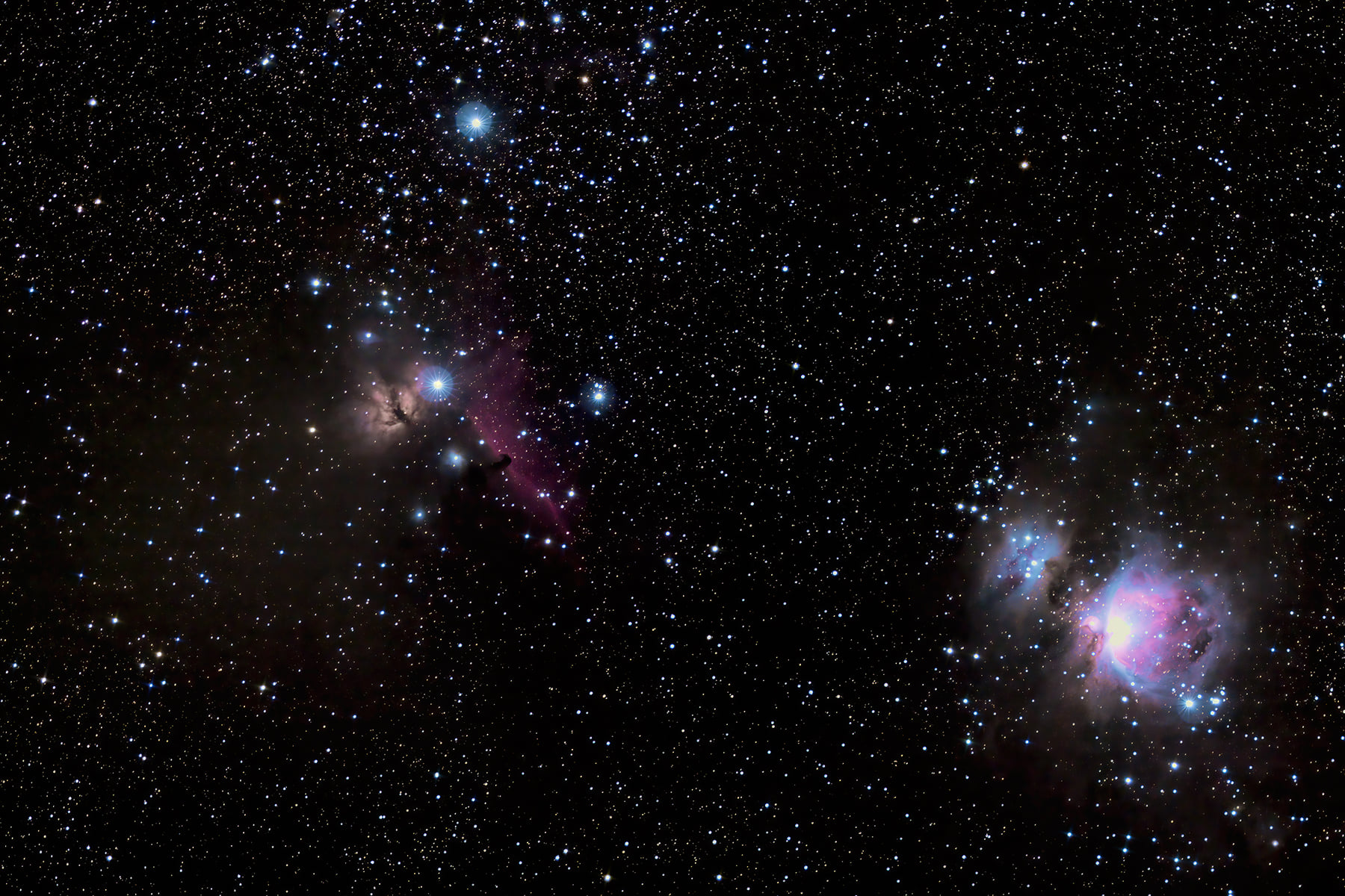 mit Running-Men-Nebel (NGC 1977), Flammennebel (NGC 2024) sowie Orionnebel (M42)